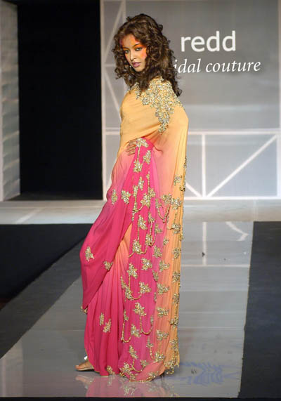 RDD06-143 Orange and fuschia sari with tassled embroidery.