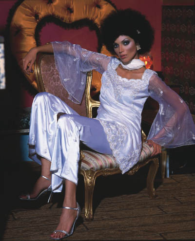 Pure Satin Trouser suit with Chinese organsa and Angel Sleeves
